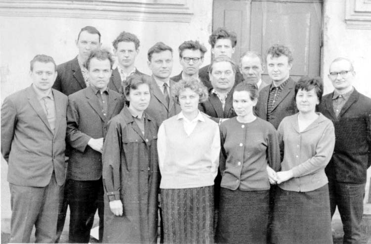 Сотрудники лаборатории магнитных монокристаллических пленок Института физики им. Л.В. Киренского Сибирского отделения Академии наук СССР. В первом ряду сидят (слева направо): Решетникова Н.Г., Черкашина Л.В., Пынько В.Г. – заведующий лабораторией, Овсянников М.А., Репина Н.М., Квеглис Л.И., Второй ряд (слева направо): Савченко В.И., Долгарев А.П., Кан С.В., Людвик Э.Ж.-Р., Бессмертных С.А., Зуев В.М., Мушаилов Э.С., Богайчук В.И., В третьем ряду (слева направо): Бахридинов Абдимаджид, Комалов А.С., Бабкин Е.В., Артемьев Е.М., Поцелуйко А. А., Киселев Н.И., Минцев Н.Н., Аннаоразов М.П. Фото 1977 года. Красноярск.
