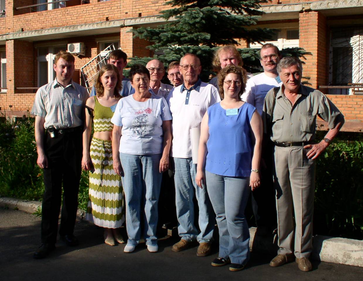 2003 год. Фото на память. Сотрудники лаборатории молекулярной спектроскопии Института физики им. Л.В. Киренского Сибирского отделения Российской академии наук (ИФ СО РАН) после воскресника в лаборатории. В первом ряду (слева направо): Сморгон С.Л., студент КГУ Чебунин Р., Маркевич Е.А., Жуйков В.А. Во втором ряду (слева направо): Назаров В., Шабанов А.В., Зырянов В.Я., Агеев А.Г., Герасимов В.П., Александровский А.С., Втюрин А.Н. В третьем ряду (слева направо): Крылов А.С., Мысливец С.А., Гуняков В.А. Красноярск.