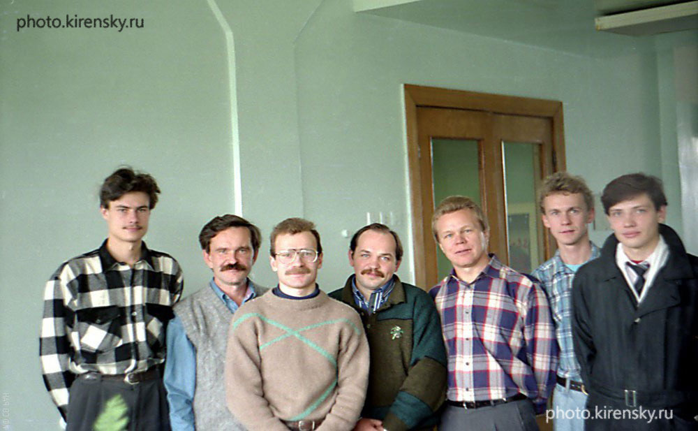 1996 год. Сотрудники лаборатории молекулярной спектроскопии Института физики им. Л.В. Киренского Сибирского отделения Российской академии наук (ИФ СО РАН). Слева направо: Шмыголь И.В., Жуйков В.А., Крылов А.С., Сморгон С.Л., Зырянов В.Я., Пресняков В.В., Баранник А.В. Красноярск.