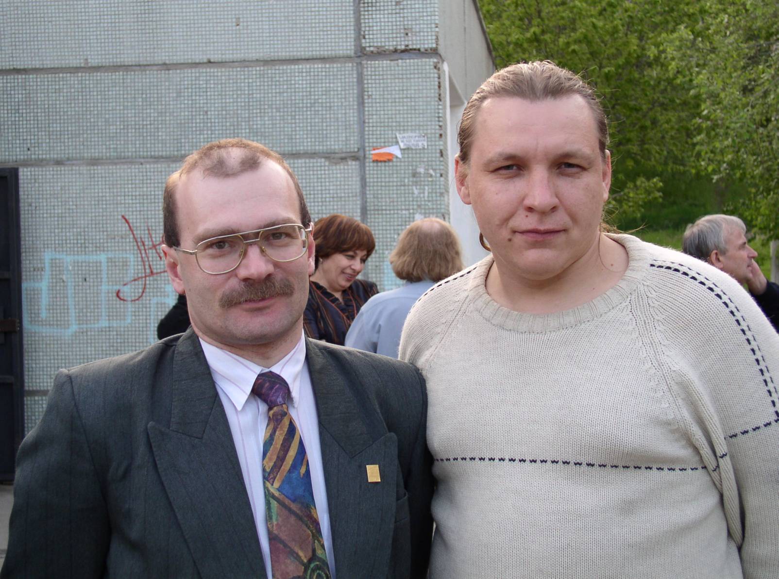 2006 год. Крылов А.С. (слева) и Агеев А.Г., сотрудники лаборатории молекулярной спектроскопии Института физики им. Л.В. Киренского Сибирского отделения Российской академии наук (ИФ СО РАН), в день празднования 50-ия лаборатории спектроскопии, одной из трех лабораторий при организации Института физики Академии наук СССР (ИФ СО АН СССР) в 1956 году, которая в 1959 году разделилась на две лаборатории: молекулярной спектроскопии и эмиссионной спектроскопии. Позже при организации отдела оптики обе лаборатории вошли в его состав. Красноярск.
