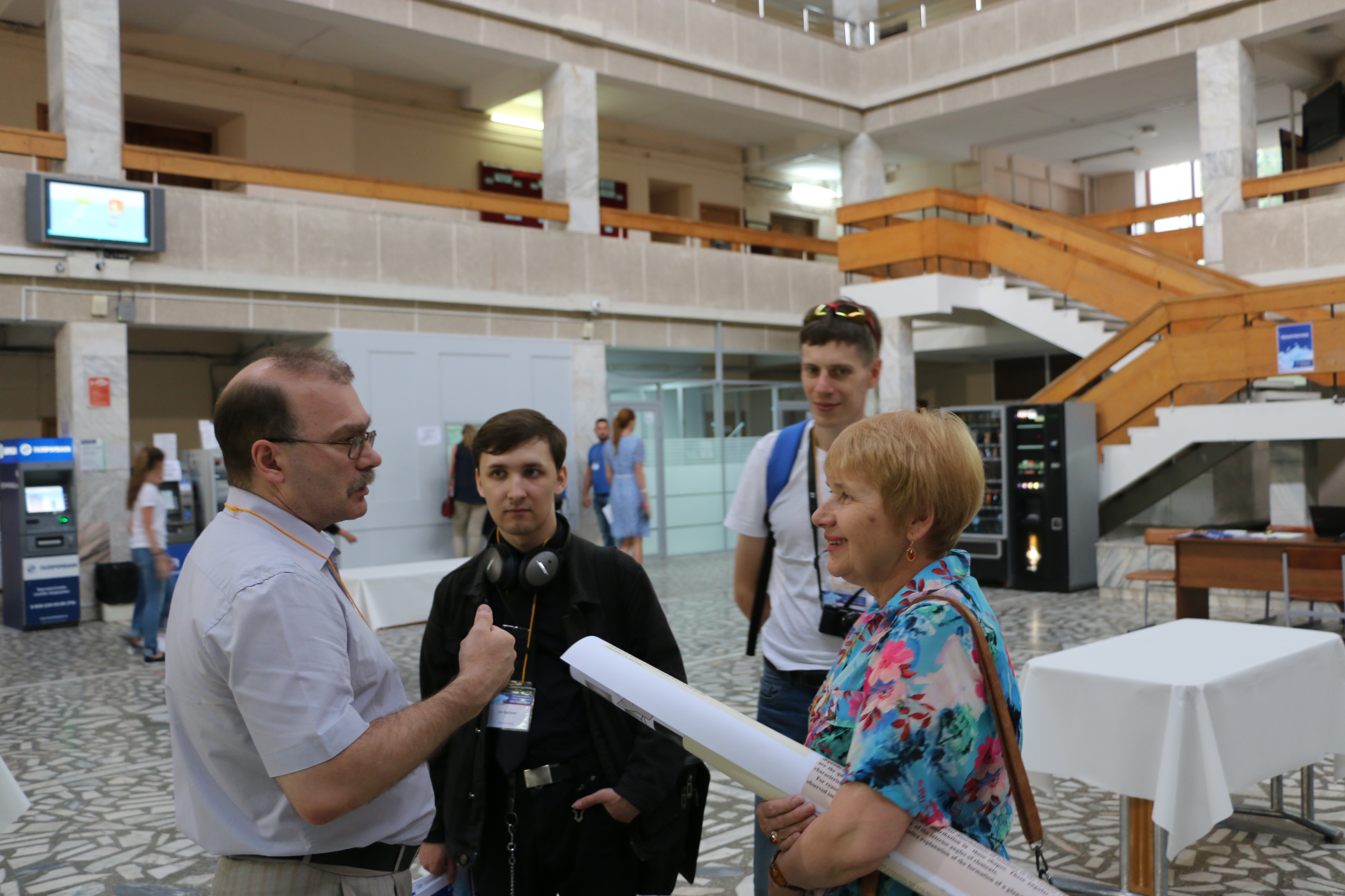 15 августа 2016 года. Крылов А.С. (слева), старший научный сотрудник лаборатории молекулярной спектроскопии Института физики им. Л.В. Киренского Сибирского отделения Российской академии наук (ИФ СО РАН), с гостями Евро-Азиатскго симпозиума "Прогресс в магнетизме" (EASTMAG-2016), симпозиум организован и проведен в Красноярске, в конгресс-холле Сибирского федерального университета (СФУ).