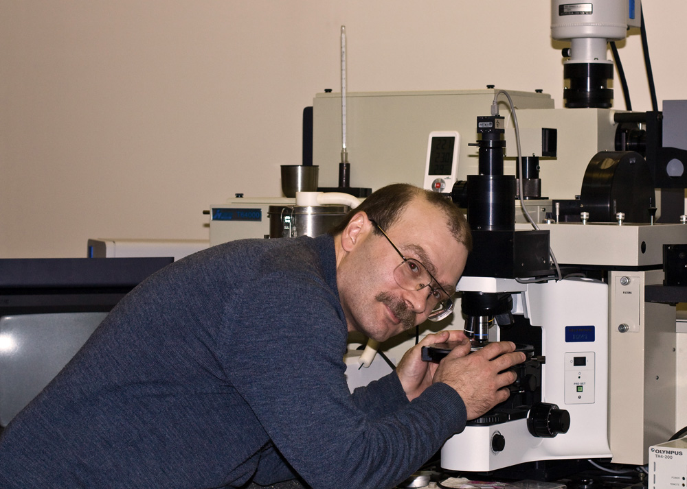 2011 год. Крылов Александр Сергеевич, старший научный сотрудник лаборатории молекулярной спектроскопии Института физики им. Л.В. Киренского Сибирского отделения Российской академии наук (ИФ СО РАН), за работой на спектрометре комбинационного рассеяния света Horiba Jobin Yvon T64000. Красноярск. Академгородок.