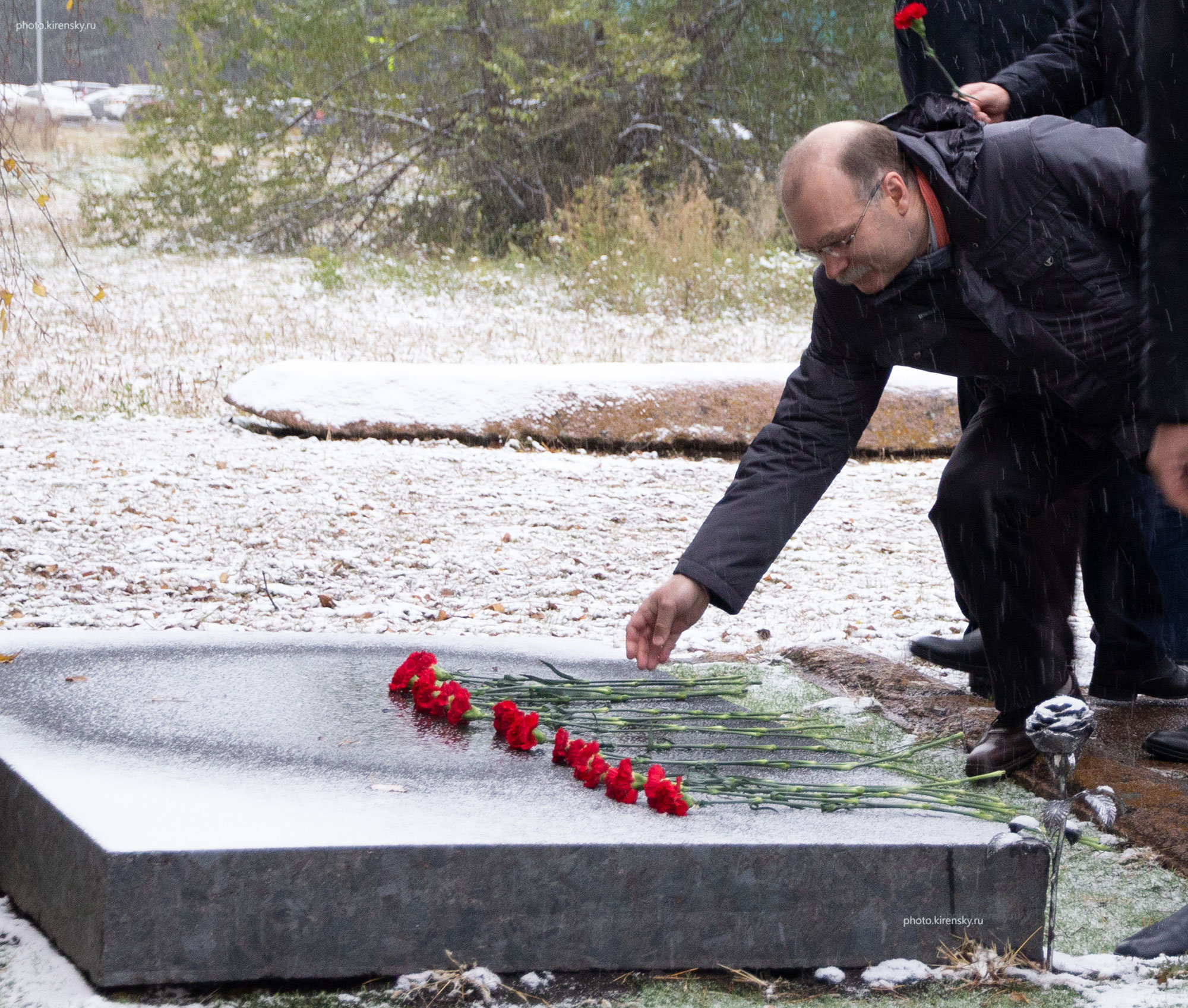 9 апреля 2009 года в Институте физики им. Л.В. Киренского Сибирского отделения Российской академии наук (ИФ СО РАН) торжественно отметили 100 лет со дня рождения основателя и первого директора института Леонида Васильевича Киренского. На снимке момент подготовки к возложению цветов и венков на могилу Леонида Васильевича. Он похоронен на территории Института физики в Академгородке Красноярска. В левом углу снимка: Бондаренко Г.В. и Александров К.С. (справа). В правом углу: Лундин А.Г. и Шабанов В.Ф. (крайний справа).