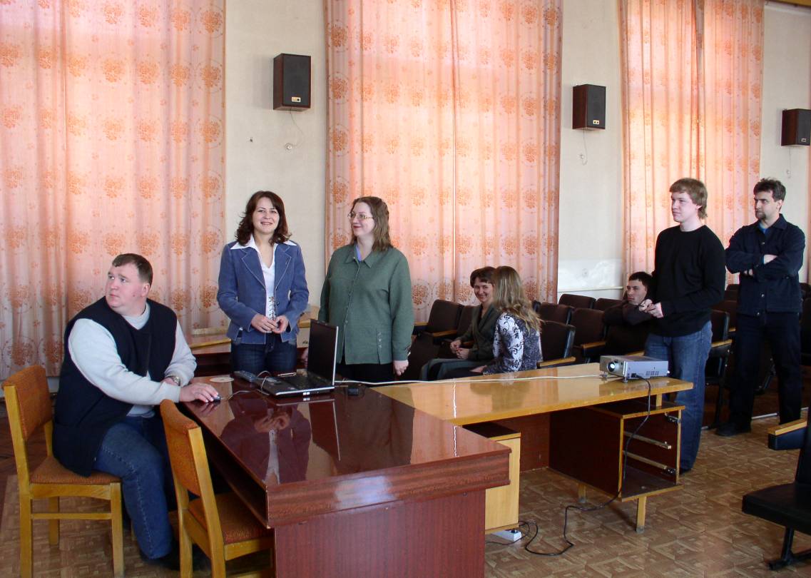 2007 год. Семинар Совета молодых ученых Института физики им. Л.В. Киренского Сибирского отделения Российской академии наук (ИФ СО РАН) в конференц-зале института. Слева направо: Варнаков С.Н., Пястолова Ю.В., Крылова С.Н., Булина Н.В Софронова С.Н., Музалевский К.В., Богданов Е.В., Комогорцев С.В., Красноярск.