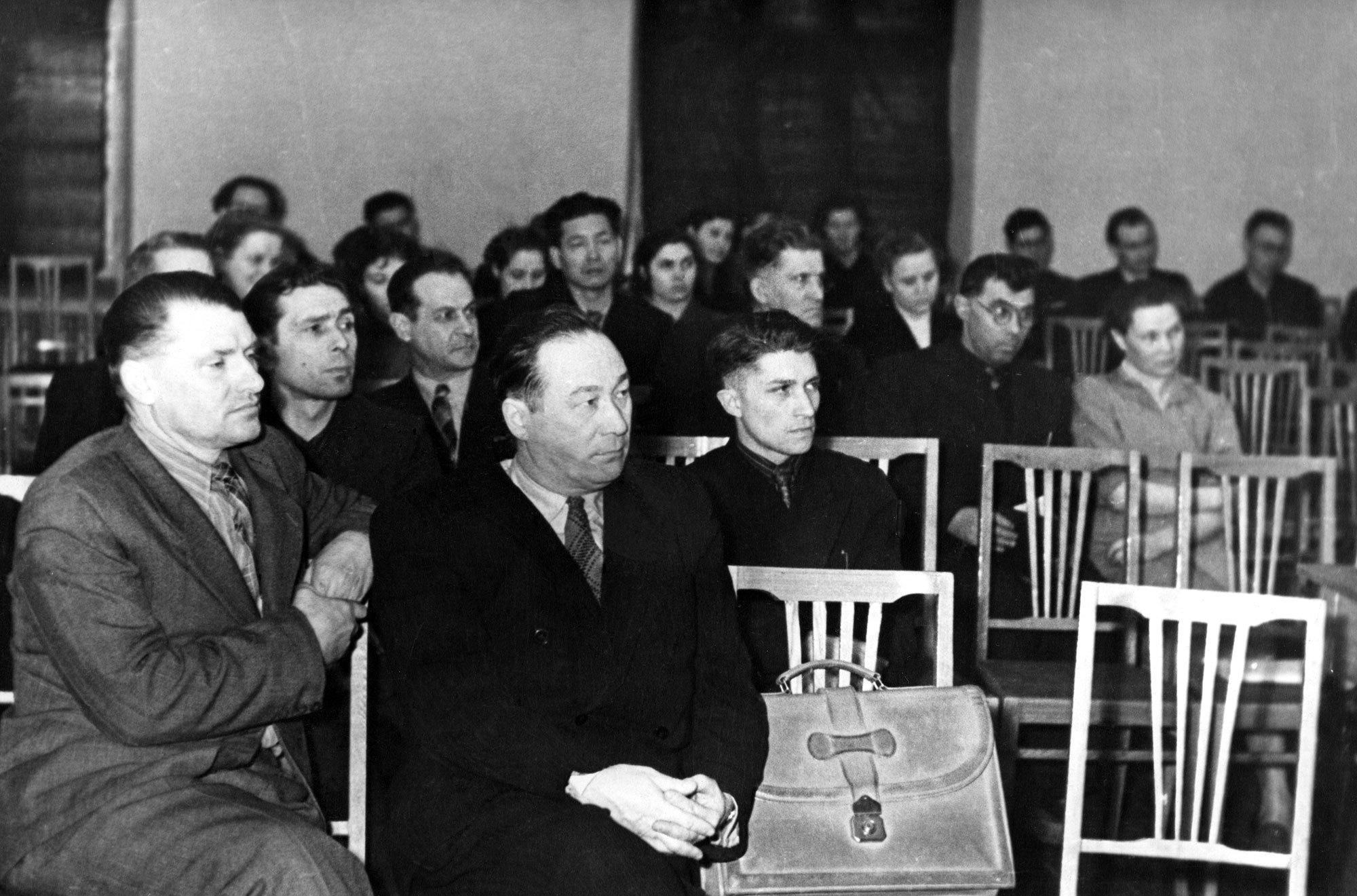 1958 год. В актовом зале Института физики Сибирского отделения Академии наук СССР (ИФ СО АН СССР)