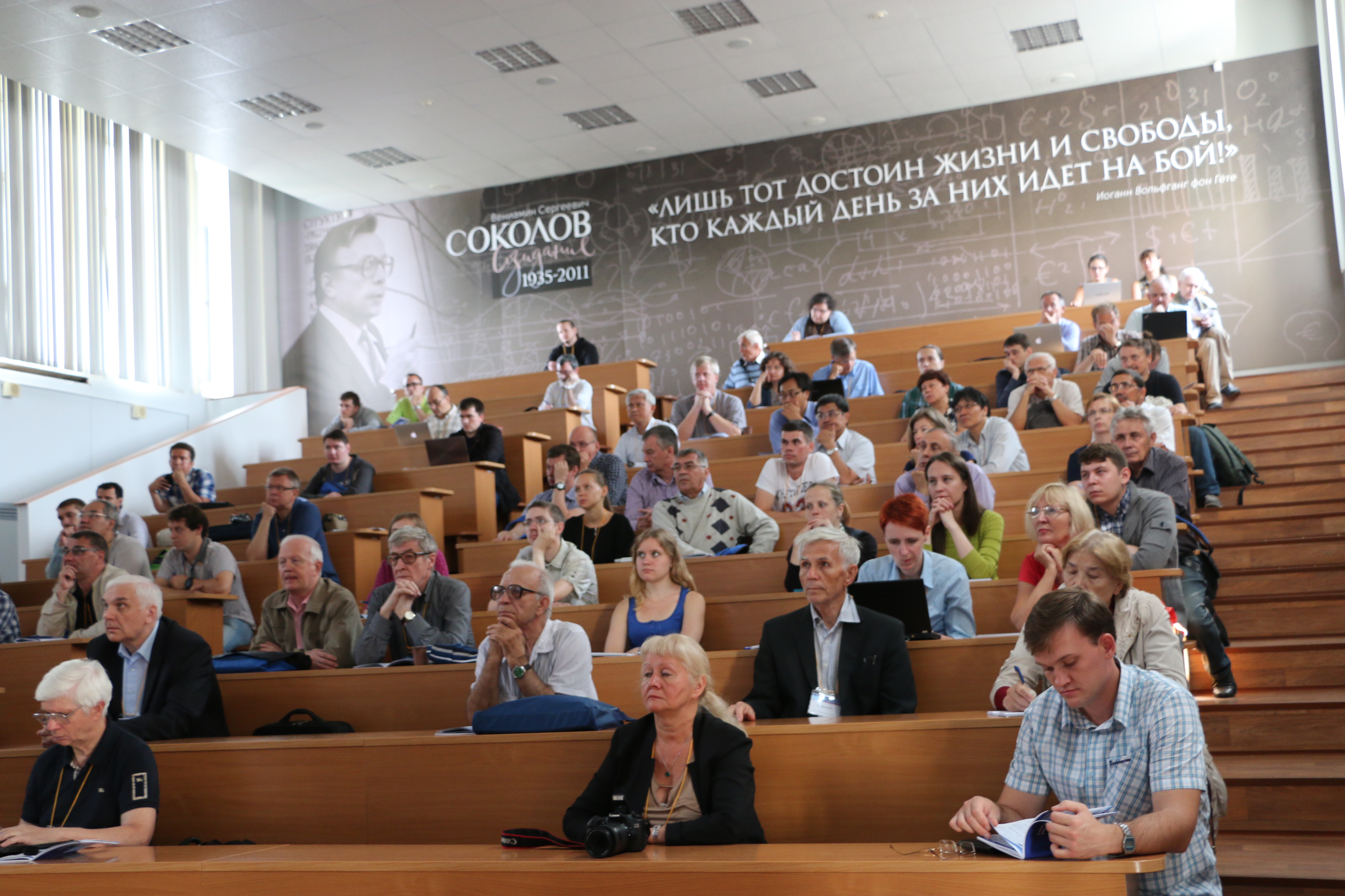 15-19 августа 2016 года в Красноярске состоялся VI Евро-Азиатский симпозиум "Прогресс в магнетизме" (EASTMAG-2016). Симпозиум проводился в конгресс-холле Сибирского федерального университета (СФУ). На снимке - время устных докладов. В первом ряду, справа- Орлов Юрий Сергеевич, старший научный сотрудник лаборатории физики магнитных явлений Института физики им. Л.В. Киренского Сибирского отделения Российской академии наук (ИФ СО РАН).