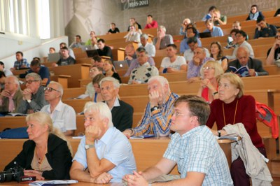 15-19 августа 2016 года в Красноярске состоялся VI Евро-Азиатский симпозиум "Прогресс в магнетизме" (EASTMAG-2016). Симпозиум проводился в конгресс-холле Сибирского федерального университета (СФУ). На снимке - время устных докладов. В первом ряду, справа-Орлов Юрий Сергеевич, старший научный сотрудник лаборатории физики магнитных явлений Института физики им. Л.В. Киренского Сибирского отделения Российской академии наук (ИФ СО РАН).