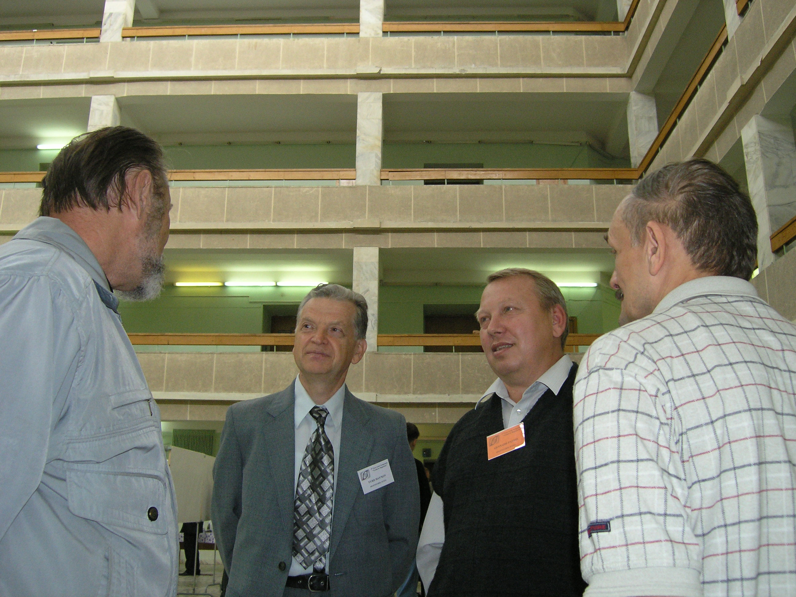 2004 год. 24-27 августа. Участники Евро-Азиатского симпозиума «Прогресс в магнетизме» (ЕASTMAG-2004), организованного и проведенного в Красноярске. В центре снимка: Маньков Ю.И. (слева) и Патрин Г.С., сотрудники Института физики им. Л.В. Киренского Сибирского отделения Российской академии наук (ИФ СО РАН).