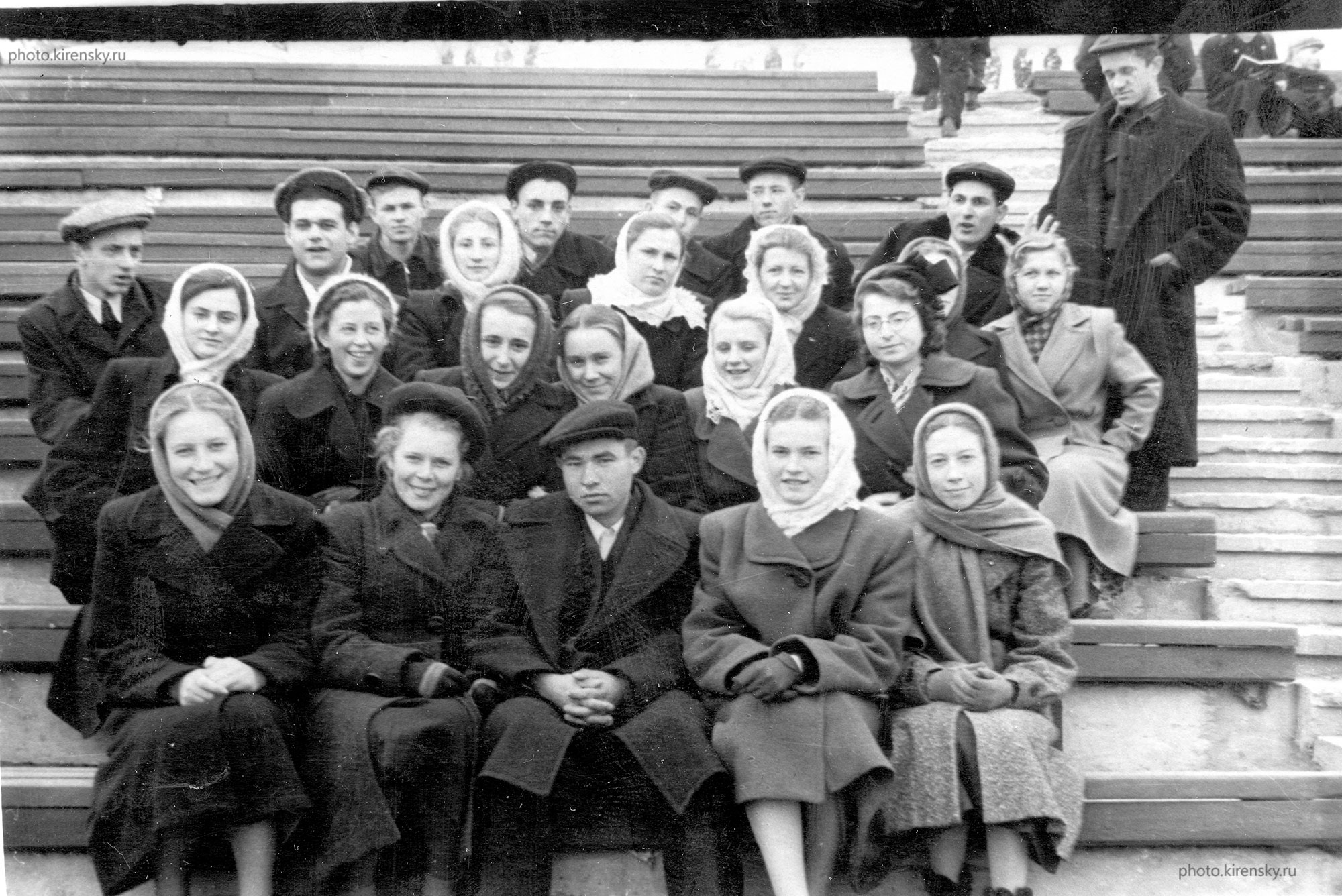 Год 1956. Студенты Томского государственного университета отправляются осенью на сельскохозяйственные работы в один из районов Томской области. Среди них (вторая справа в первом ряду) студентка Новикова Э.А., ныне (2017 год) - Элеонора Анатольевна Петраковская, старший научный сотрудник лаборатории радиоспектроскопии и спиновой электроники Института физики СО РАН в Красноярске.