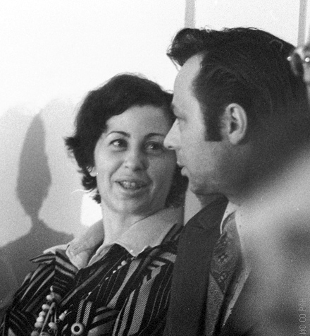 На общеинститутском физическом семинаре в конференц-зале Института физики Сибирского отделения Академии наук СССР (ИФ СО АН СССР), сотрудники лаборатории резонансных свойств магнитоупорядоченных веществ института Элеонора Анатольевна Петраковская и Герман Антонович Петраковский, фото 1973 года. Красноярск.