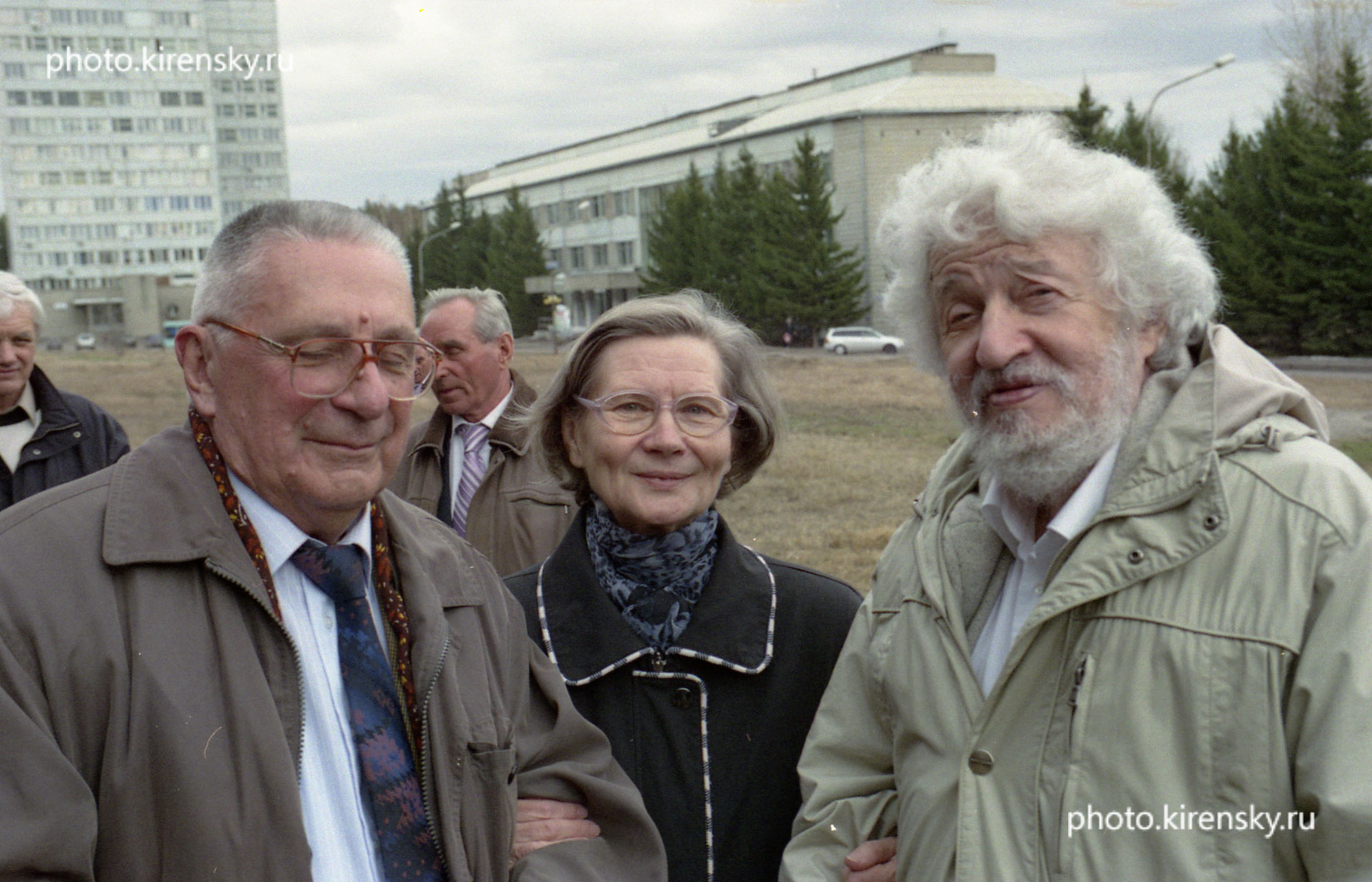 9 апреля 2009 года в Институте физики им. Л.В. Киренского Сибирского отделения Российской академии наук отмечали 100 лет со дня рождения академика Леонида Васильевича Киренского, основателя и первого директора института. На снимке – после возложения цветов и венков к памятнику Киренского (он похоронен в Академгородке Красноярска на территории института, им основанного и носящего его имя). Слева направо: Игнатченко В.А., Родичева Э.К., Хлебопрос Р.Г. на заднем плане: Панкрац А.И (слева) и Могилевцев В.Е. Красноярск.