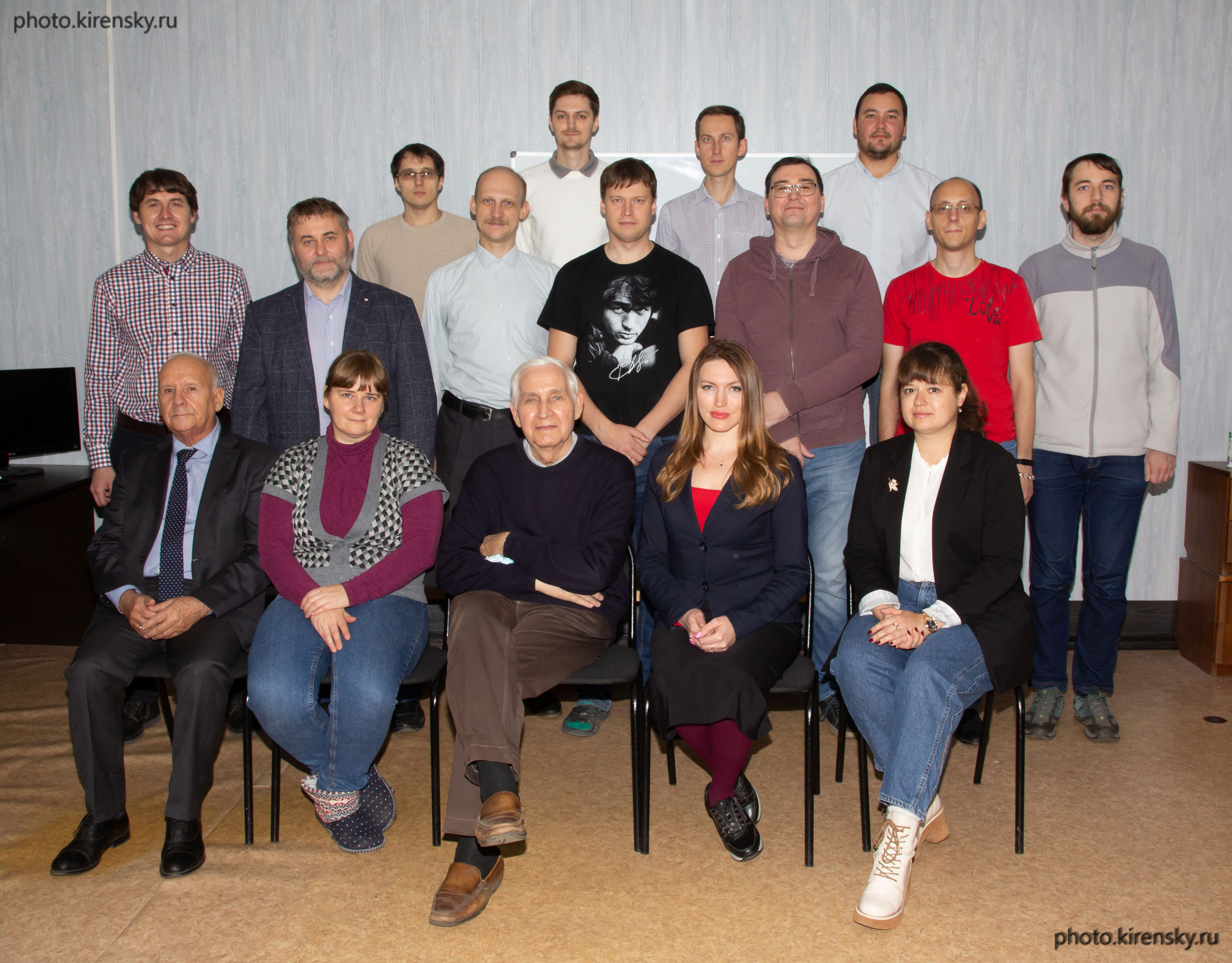 2021 год. Сотрудники лаборатории фотоники молекулярных систем Института физики им. Л.В. Киренского Сибирского отделения Российской академии наук. Сидят, слева направо: Подопригора В.П., Рудакова Н.В. Ветров С.Я., Авдеева А.Ю., Максимова О.А. Во втором ряду: Тамбасов И.А., Батрак А.П., Тимофеев И.В. (заведующий лабораторией), Панкин П.С., Макаров И.А., Шестаков В.А., Высотин М.А. В третьем ряду: Пилипчук А.С., Буханов Е.Р., Пятнов М.В.Бикбаев Р.Г. Лаборатория создана в декабре 2018 года на основе исследовательских групп лабораторий когерентной оптики и молекулярной спектроскопии Инстиута физики.