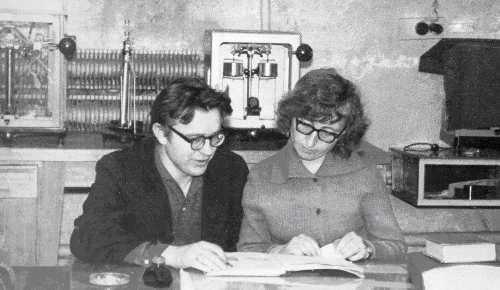 Сотрудники лаборатории резонансных свойств магнитоупорядоченных веществ Института физики им. Л.В. Киренского Сибирского отделения Академии наук СССР Смокотин Э. М. и Саблина К. А., фото 1974 года. Красноярск.