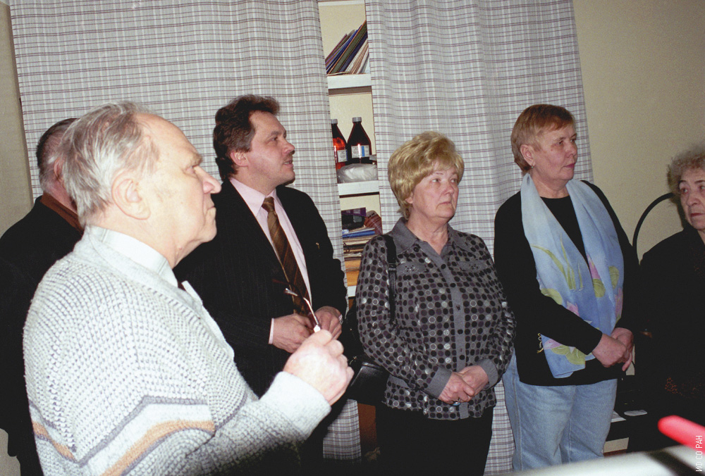 Экскурсия ветеранов журналистики Красноярска в лабораторию радиоспектроскопии и спиновой электроники Института физики им. Л.В. Киренского Сибирского отделения Российской академии наук (ИФ СО РАН). Слева направо: В. Кузнецов, Н.В. Волков -заведующий лаборатоией, Л. Комарова, Л. Черепанова, Г. Вахменина. Снимок 2009 года. Красноярск.