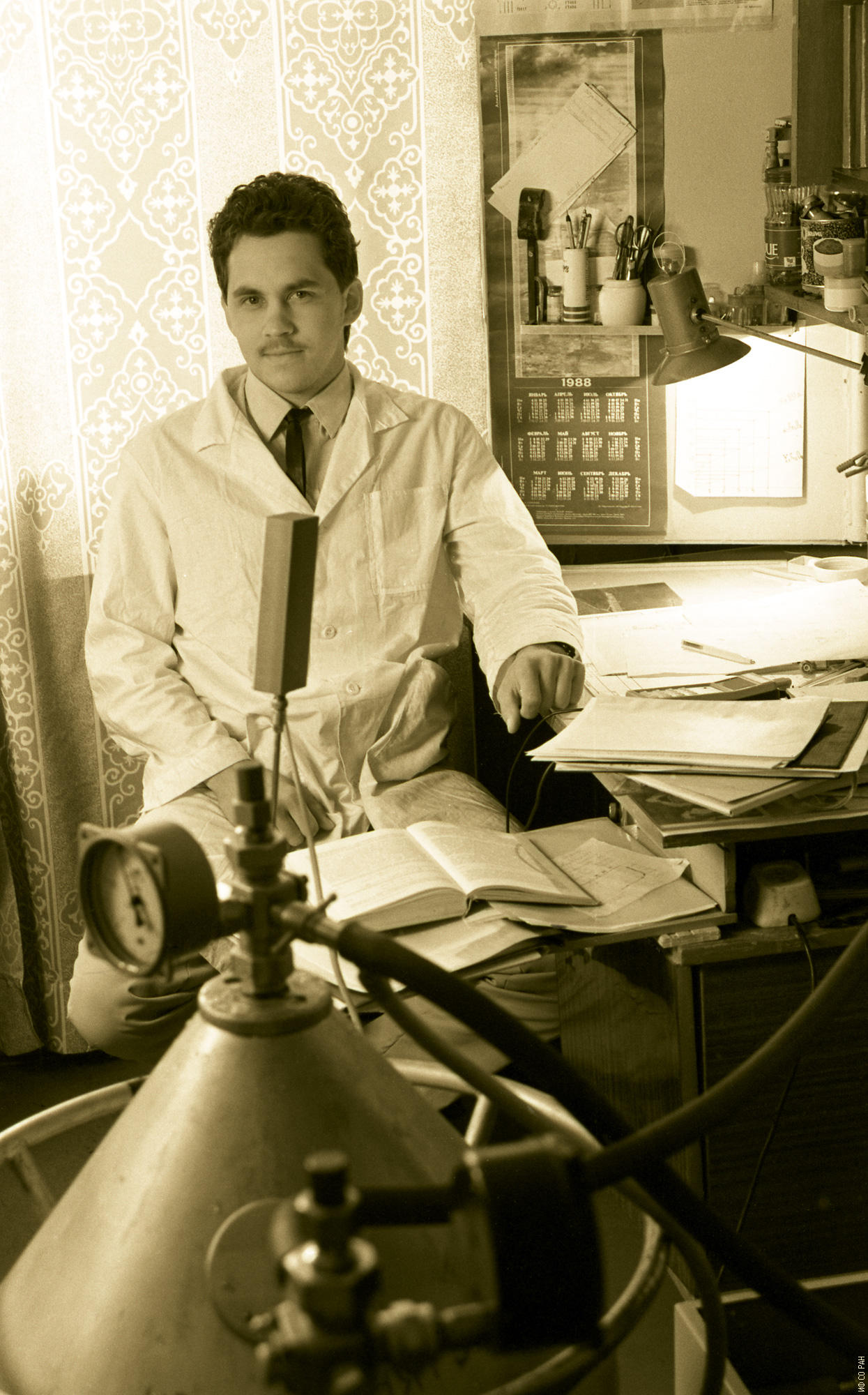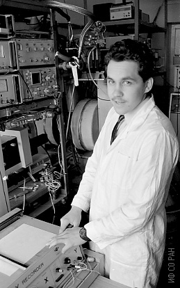 Волков Н.В., ведущий инженер лаборатории резонансных свойств магнитоупорядоченных веществ Института физики им. Л.В. Киренского Сибирского отделения Академии наук СССР (ИФ СО АН СССР). Снимок 1988 года. Красноярск.