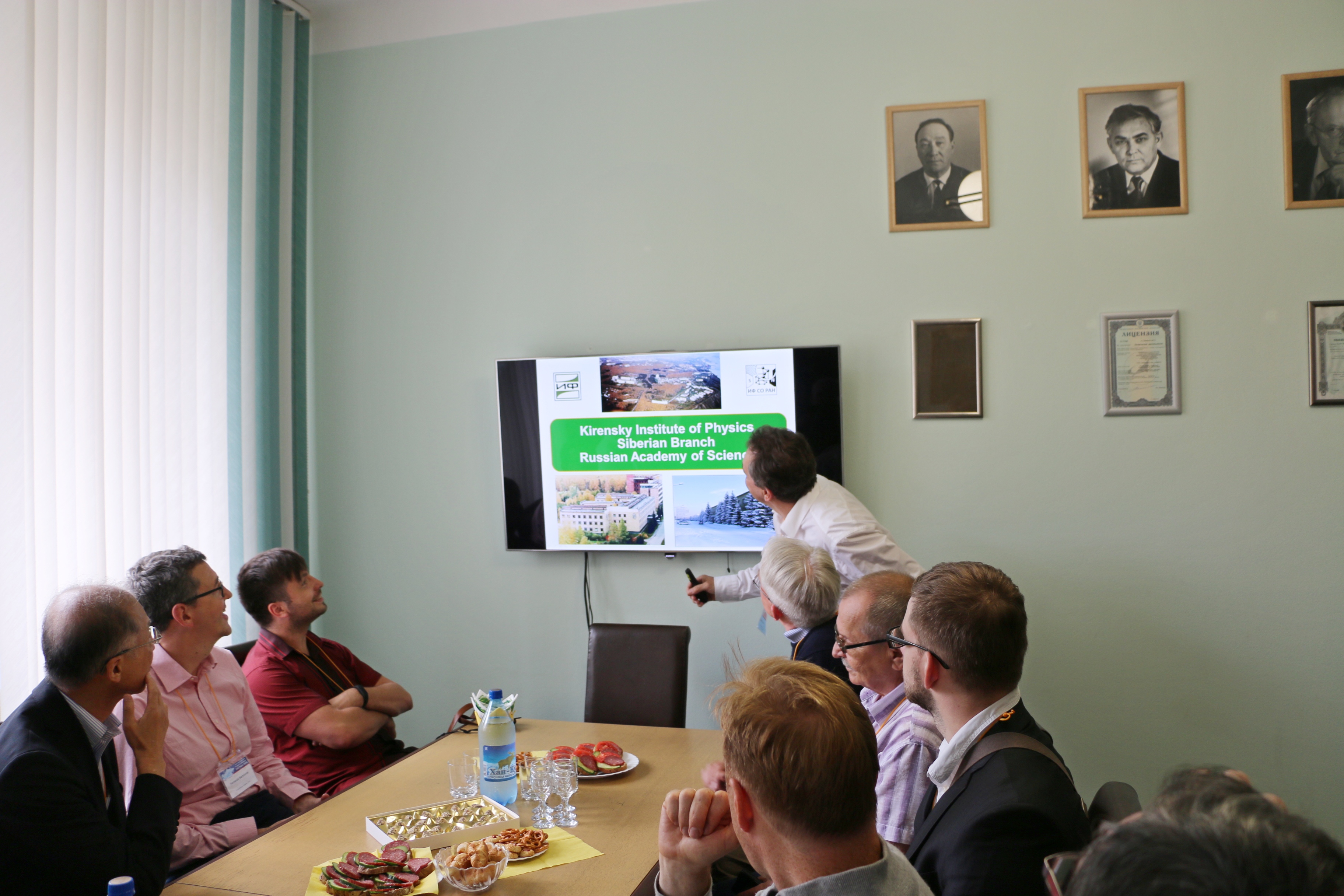 Участники Международного рабочего совещания по квантовой наноспинтронике, которое состоялось 21−23 августа 2016 года, посетили оздоровительно-спортивный лагерь "Политехник" Сибирского федерального университета, расположенный на берегу Красноярского моря. Слева направо: Д. Бюрглер (Юлихский исследовательский центр, Германия), Х. Майерхайм (Институт физики микроструктур общества Макса Планка, Галле, Германия), Михаэль Фарле (Университет Дуйсбург−Эссен, Германия), академик РАН В.В. Устинов (Институт физики металлов им. М.Н. Михеева УрО РАН), С.О. Демокритов (Мюнстерский университет, Германия), Н.В. Волков (Институт физики им. Л.В. Киренского Сибирского отделения Российской академии наук (ИФ СО РАН).