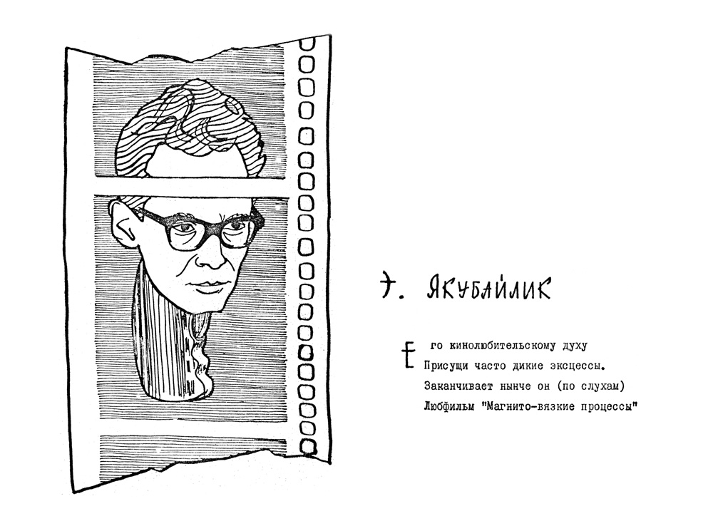 Дружеский шарж Якубайлика Э.К. из книги шаржей "Музей друзей", первая часть которой вышла в 1967 году. Авторами ее являются научные сотрудники Института физики Сибирского отделения Академии наук СССР (ИФ СО АН СССР) О.А. Баюков и Н.С. Чистяков. Книга вышла малым тиражом (всего 100 экземпляров) и моментально разошлась среди персонажей книги, сотрудников и была подарком авторов к 10-му юбилею института. Красноярск.
