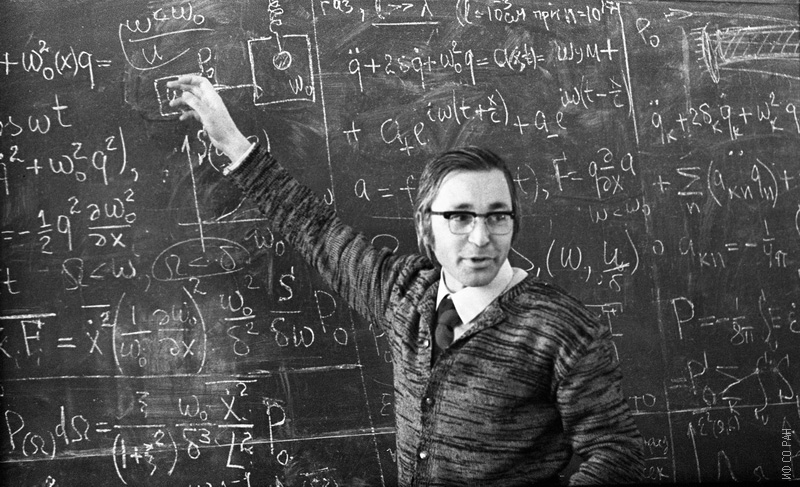 1980 год. Заславский Георгий Моисеевич, заведующий лабораторией нелинейных процессов Института физики им. Л.В. Киренского Сибирского отделения Академии наук СССР (ИФ СО АН СССР), выступает на семинаре теоретического отдела института. Красноярск.