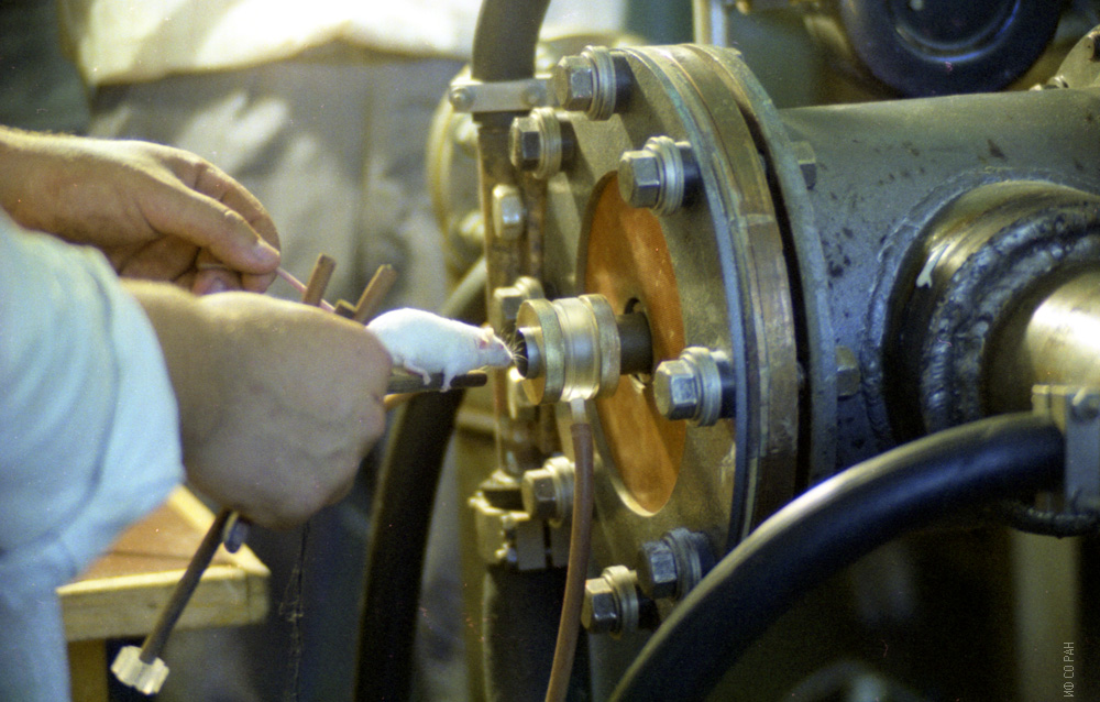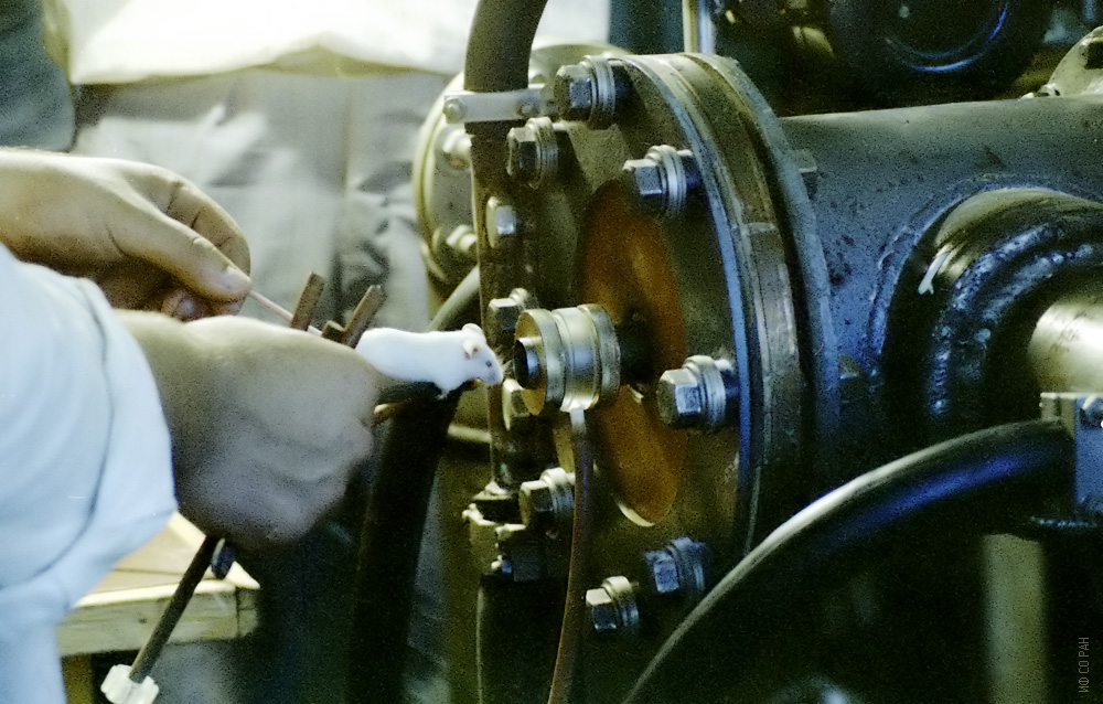 Совместный с Институтом биофизики СО АН СССР эксперимент по влиянию сильного магнитного поля на живой организм, фото 1990 г.