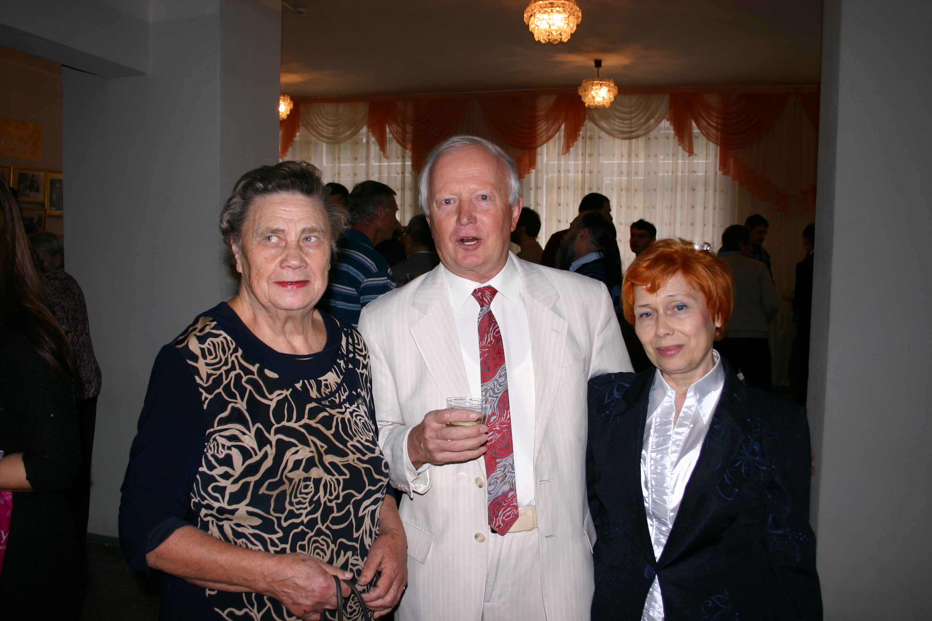 12 октября 2016 года. На празднике в честь 60-летия Института физики им. Л.В. Киренского Сибирского отделения Российской академии наук, слева направо: Бондаренко С.П., председатель Совета ветеранов Академгородка, Вальков В.В., заведующий лабораторией теоретической физики института, Буркова Л.В., ветеран института. Красноярск.