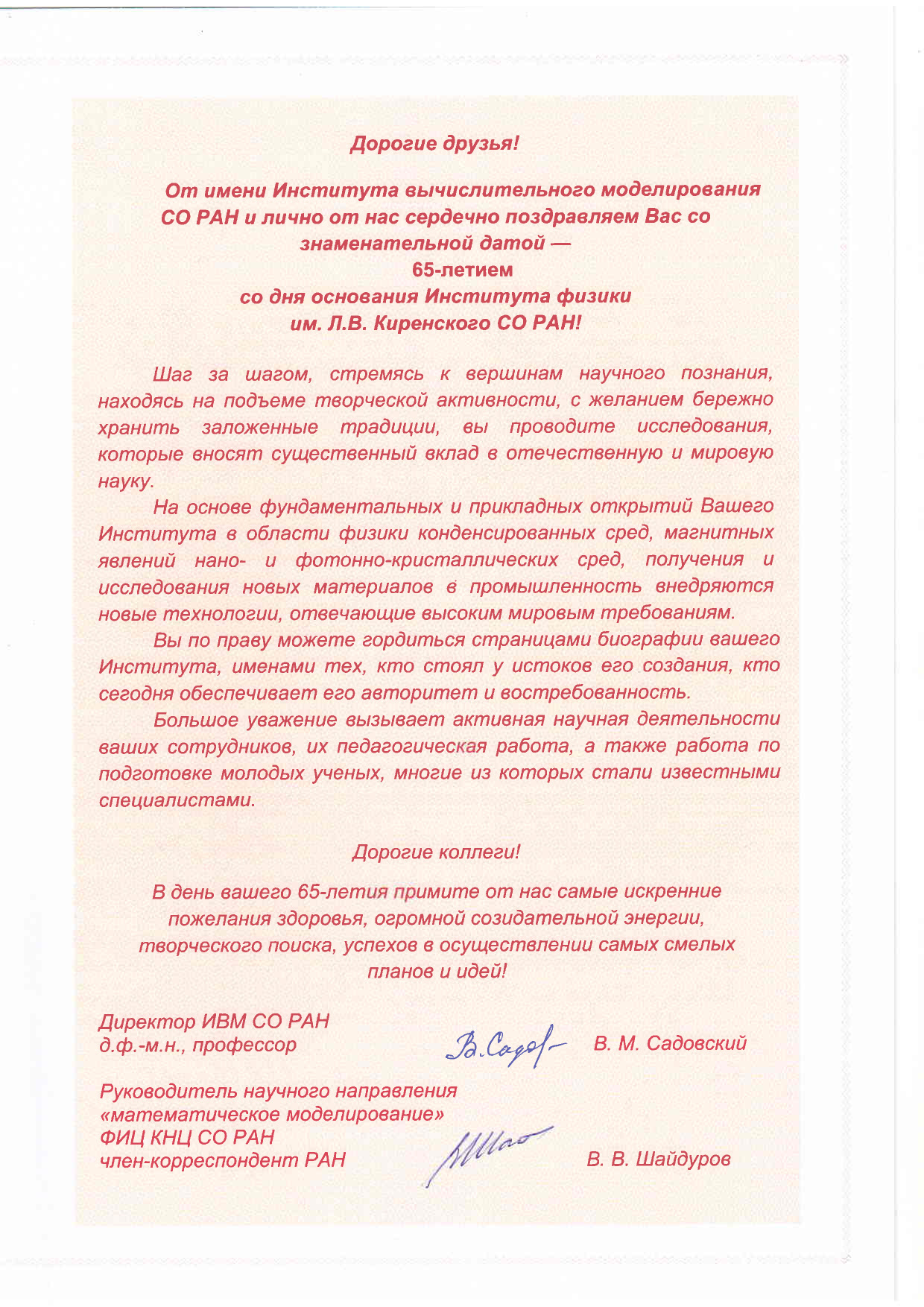 Вы здесь: Главная / События / Институту - 65 / Поздравление от ИВМ