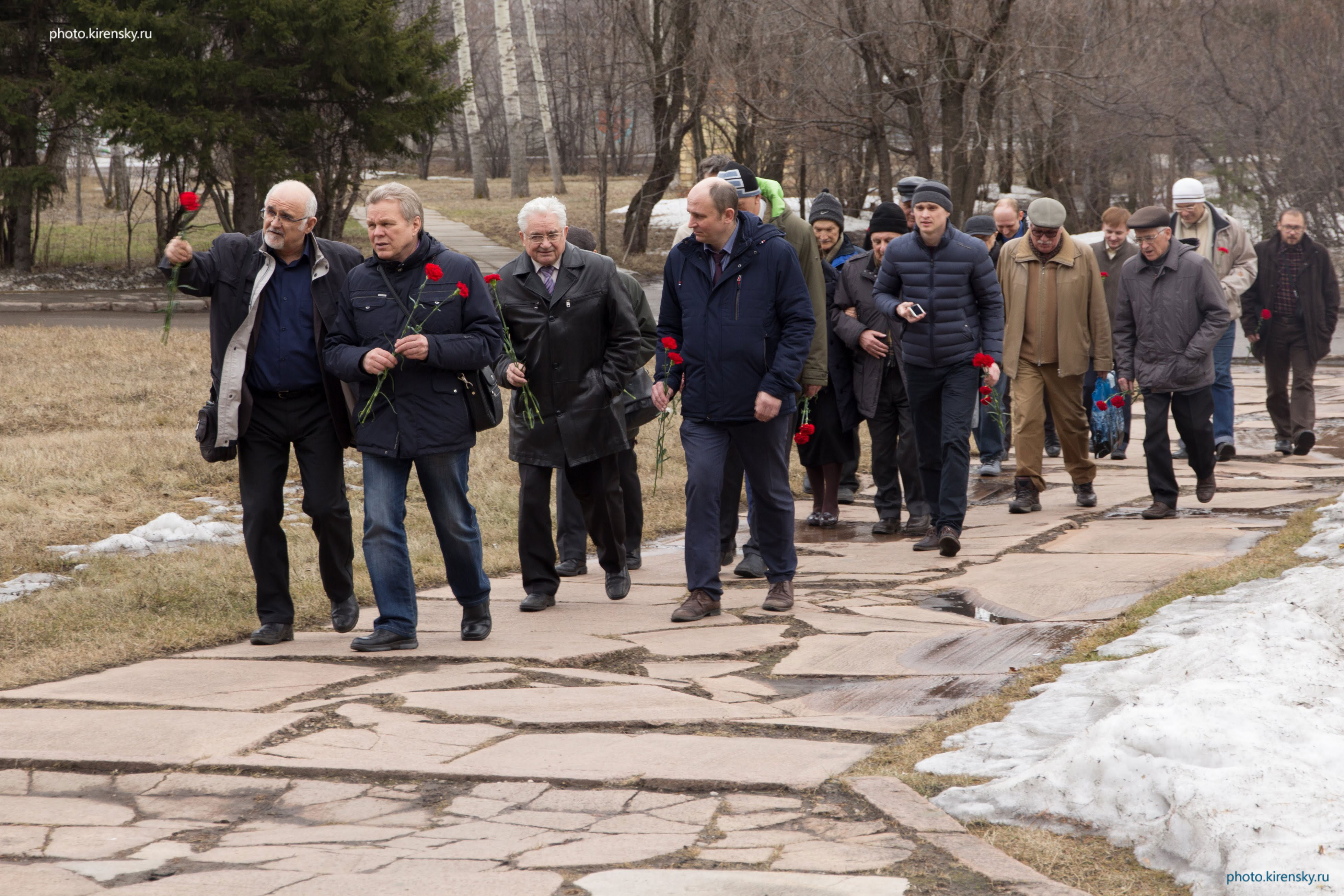 8 апреля 2018 года. Участники ученого Совета Института физики им. Л.В. Киренского Сибирского отделения Российской академии наук, посвященного 109-ой годовщине со дня рождения организатора и первого директора института академика Леонида Васильевича Киренского, на пути к его могиле в Академгородке Красноярска, где он похоронен, чтобы возложить цветы. Слева направо: Архипкин В.Г, Зырянов В.Я, академик Шабанов В.Ф., Балаев Д.А. Красноярск.