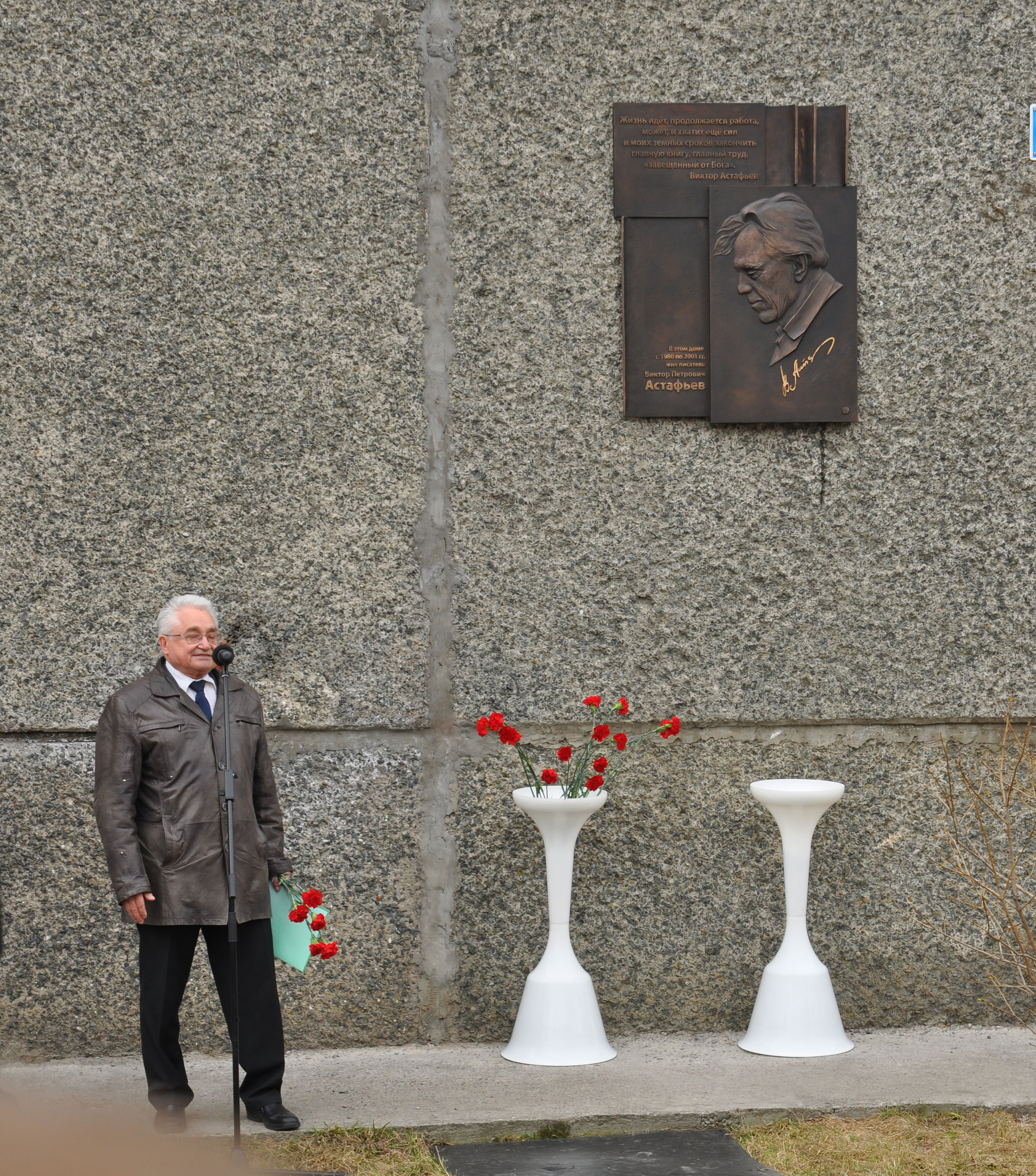 2015 год, 30 апреля. Академик Василий Филипповисч Шабанов, председатель Президиума Красноярского научного центра Сибирского отделения Российской академии наук (КНЦ СО РАН), выступает на открытии мемориальной доски, посвященной писателю Виктору Петровичу Астафьеву на доме № 14 в Академгородке Красноярска, в котором Виктор Петрович жил долгие годы.