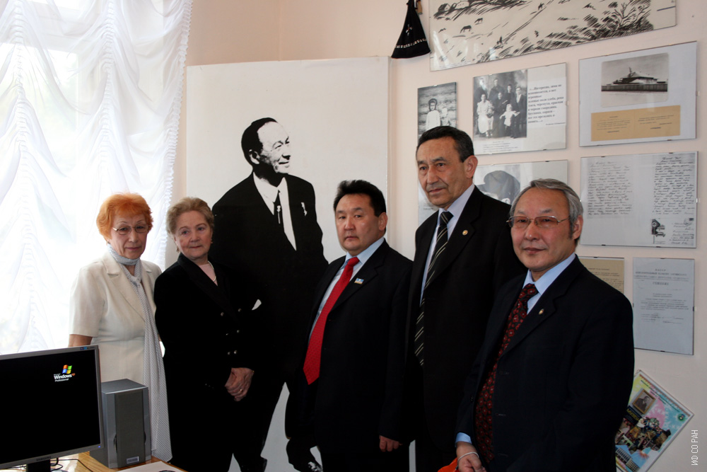 В мемориальном музее академика Л.В.Киренского в перерыве торжественного заседания, посвященного 100-ию со дня рождения Л.В. Киренского, организатора и первого директора Института физики им. Л.В. Киренского Сибирского отделения Российской академии наук (ИФ СО РАН). Слева направо: Хрусталева Л.М.; Овчинникова Т.Л. (дочь Л.В.Киренского); Пахомов А. А., министр науки и профессионального образования Республики Саха (Якутия); Колодезников И. И., президент Академии наук Республики Саха (Якутия); Артемьев А.Е., глава муниципального образования «Амгинский улус» (район) Республики Саха (Якутия); Николаев И. Н, проректор Якутского государственного университета им. М.К. Амосова, 9 апреля 2009 года.
