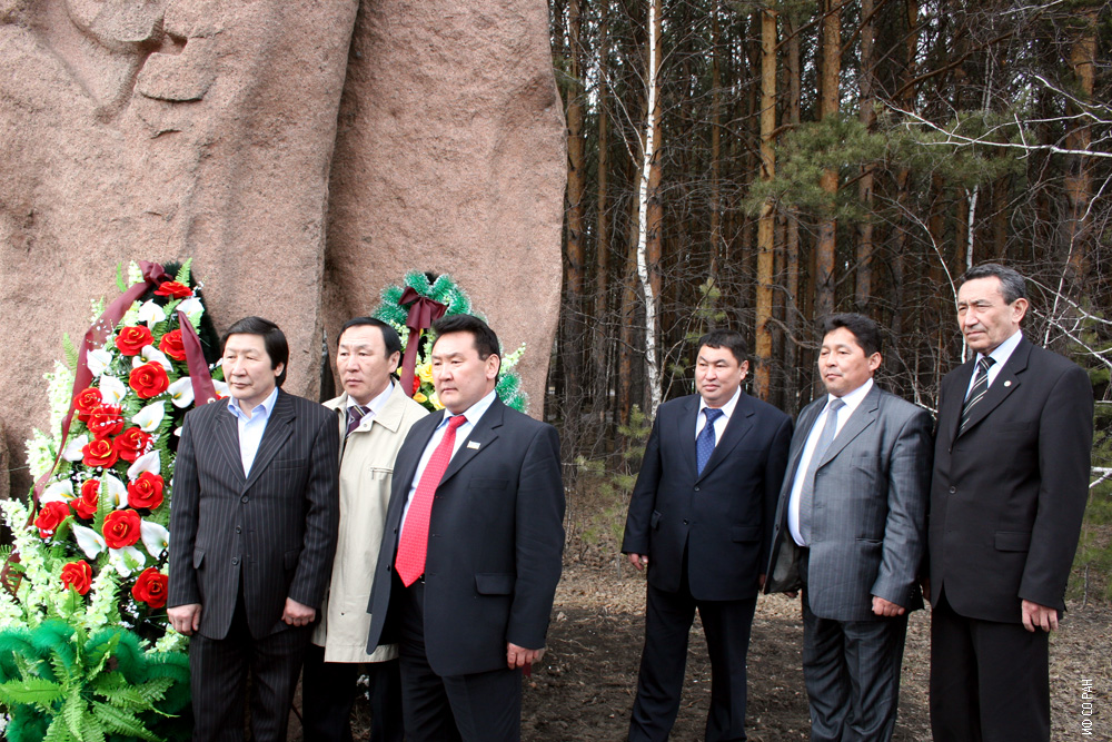 У могилы академика Л.В.Киренского, организатора и первого директора Института физики им. Л.В. Киренского Сибирского отделения Российской академии наук, делегация Республика Саха (Якутия). Якутия - Малая родина Леонида Васильевича, там он родился, вырос и окончил школу. Слева направо: Никита Никитович Осипов, генеральный директор торгового дома «Алмазные грани Якутии», Неустроев Иван Гаврилович, главный специалист Департамента при Президенте Республики Саха (Якутия) по