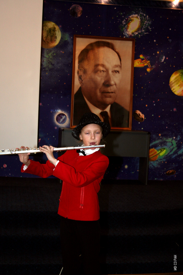 После торжественного заседания, посвященного 100-тию со дня рождения академика Л.В.Киренского, организатора и первого директора Института физики им. Л.В. Киренского Сибирского отделения Российской академии наук, в Доме ученых Красноярского научного центра СО РАН выступили учащиеся детской музыкальной школы № 11 Академгородка. На снимке: Катя Зайцева (флейта).