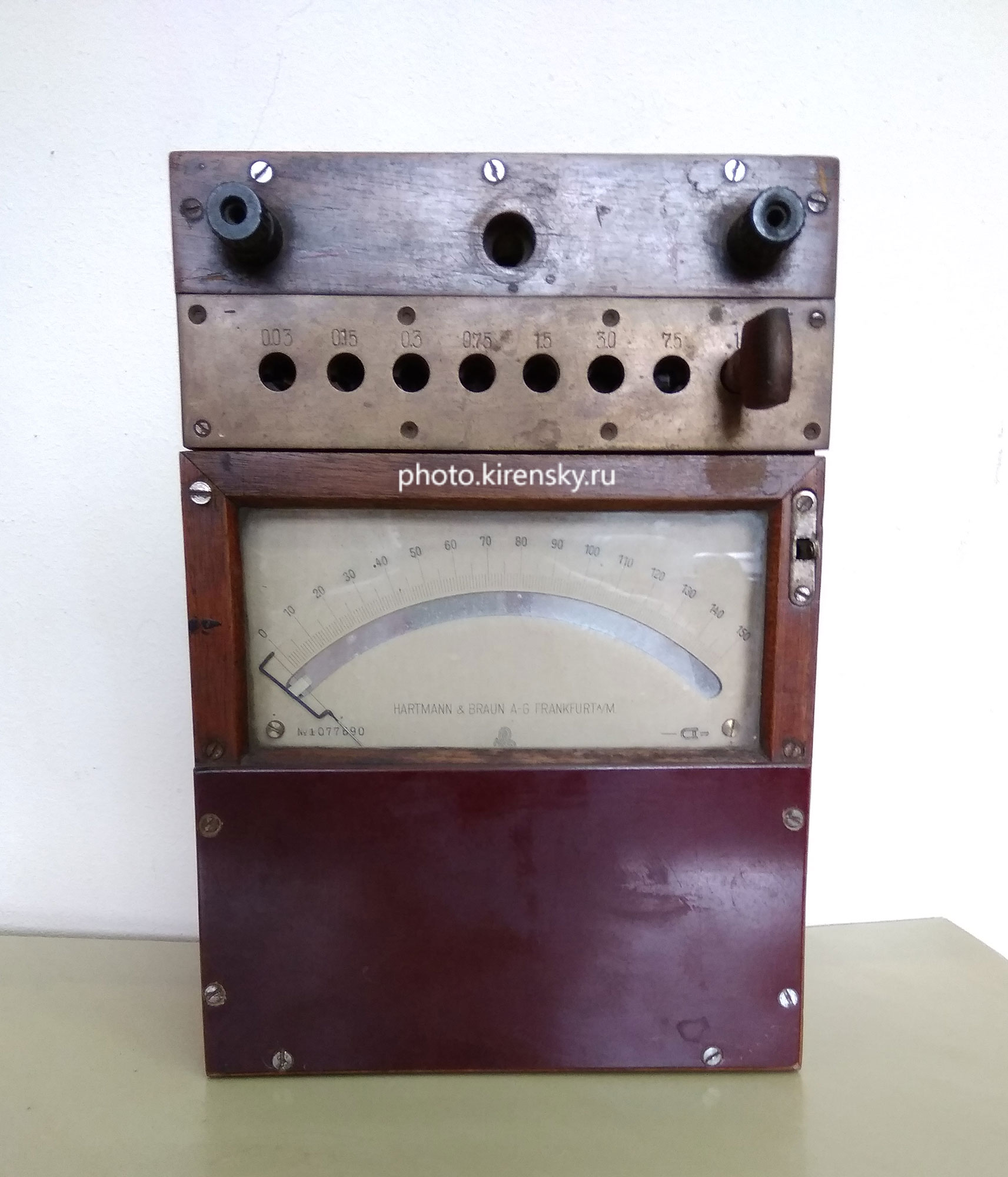 Один из приборов, поступивших в институт из Москвы после начала его работы, и чудом сохранившийся до наших дней. Это амперметр компании «NARTMANN & BRAUN», изготовленный во Франкфурте (год неизвестен).