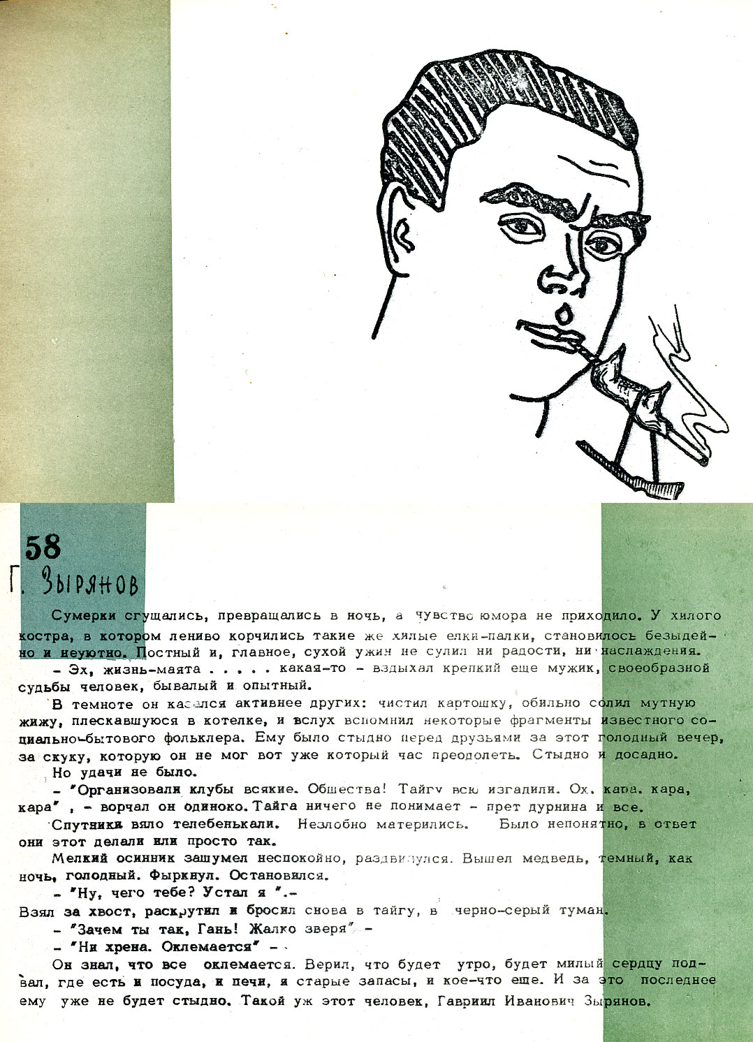 Дружеский шарж Зырянова Г.И. из книги "Музей друзей", изданной научными сотрудниками Института физики Сибирского отделения Академии наук СССР (ИФ СО АН СССР) Олегом Артемьевичем Баюковым и Николаем Сергеевичем Чистяковым. Удивительная книжка дружеских шаржей и эпиграмм на сотрудников Института физики СО АН СССР. Она вышла в 1967 году к 10-летию начала работы института. Вышла небольшим тиражом в 100 экземпляров и распространялась строго по списку, лично в руки. Узнать себя на страницах книги смогли 48 самых ярких и заметных личностей молодого института. Позже (в 1971 году) вышла вторая книга под таким же названием. Что побудило их взяться за такой труд, авторы подробно изложили в предисловии к первой и второй книгам. Книги размещены на сайте.